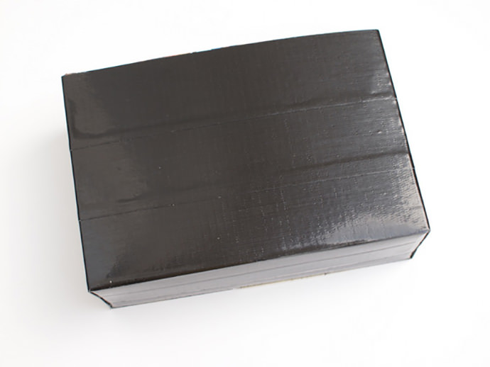 Pull off both sheets of duct tape and stick them to each other (sticky sides in). Use a scissor to trim your sheets to the width of your box. This is how you will make the rest of your strap.