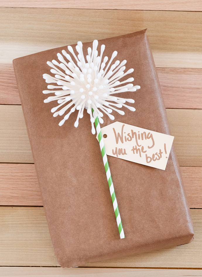 As wonderful as this gift wrap is, I honestly think the flower would be just as cute (maybe even cuter) all by itself! Forget the box underneath, just gather up some cotton swabs and grow your own garden!