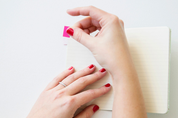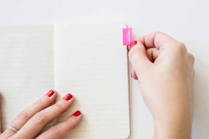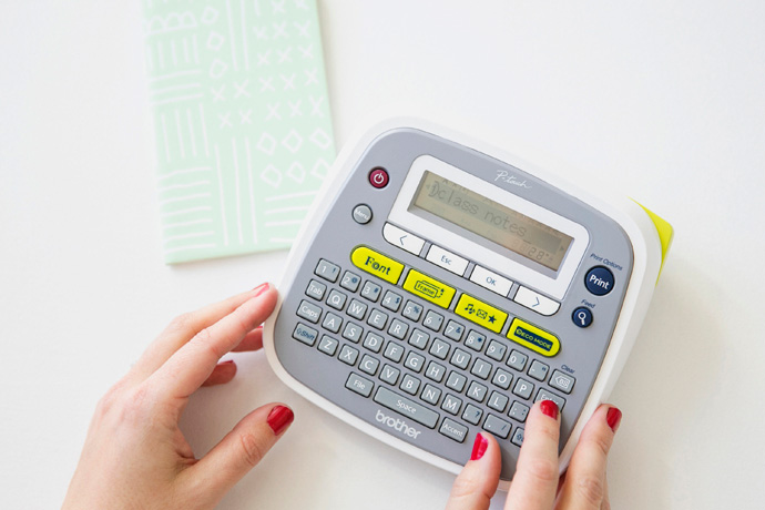 For the finishing touch, create personalized tabs with your Brother label maker. The great thing about this guy is that it comes with so many features (including up to 2 lines of text). There are also lots of colored ribbons to choose from, so you can personalize your tabs any way you’d like. A neat little trick for creating notebook tabs is to add a carriage return after your text. With the text sitting on the first line and the second line blank, your label is now a perfect little tab.