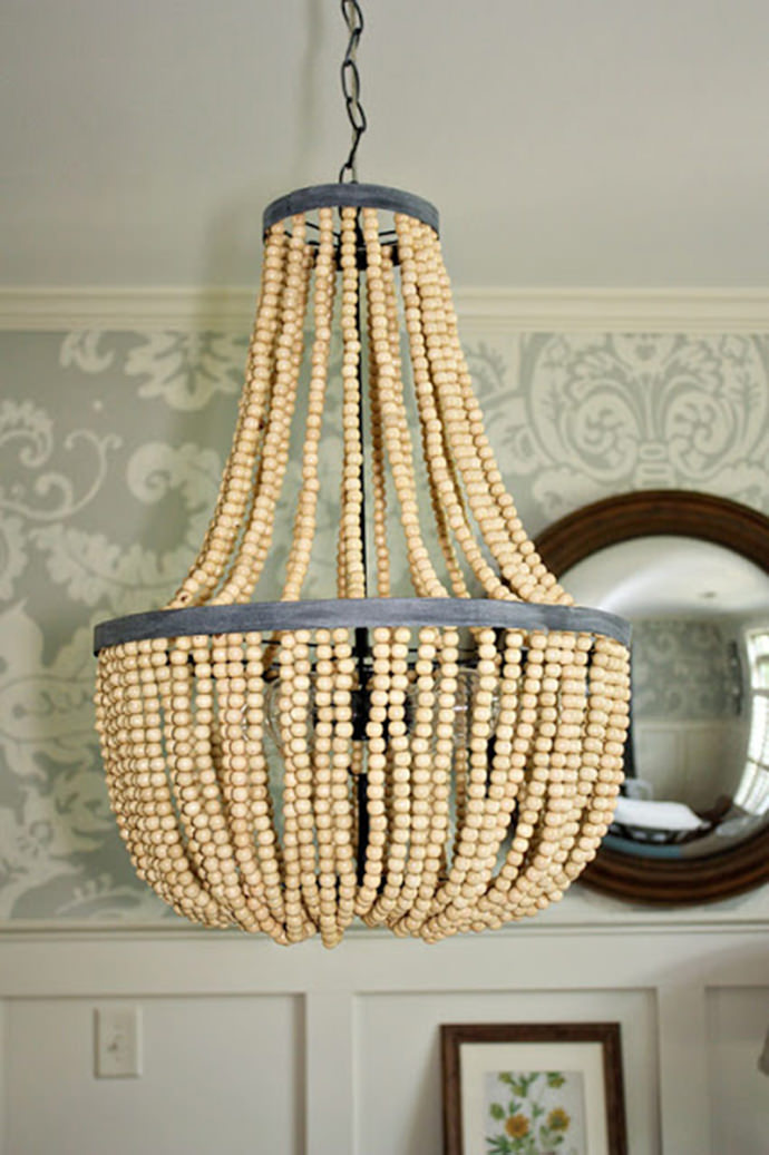 We love wooden beads around our house – they’re easy to work with and look so good at the same time. This project would be stunning hanging on a covered porch, or use a bright color and put it in your kids room!
