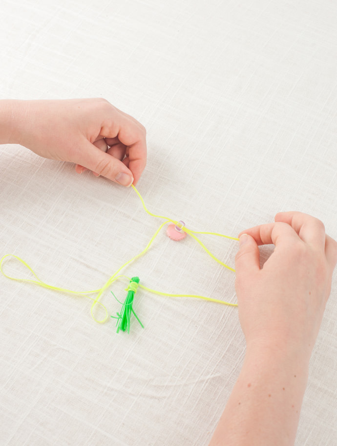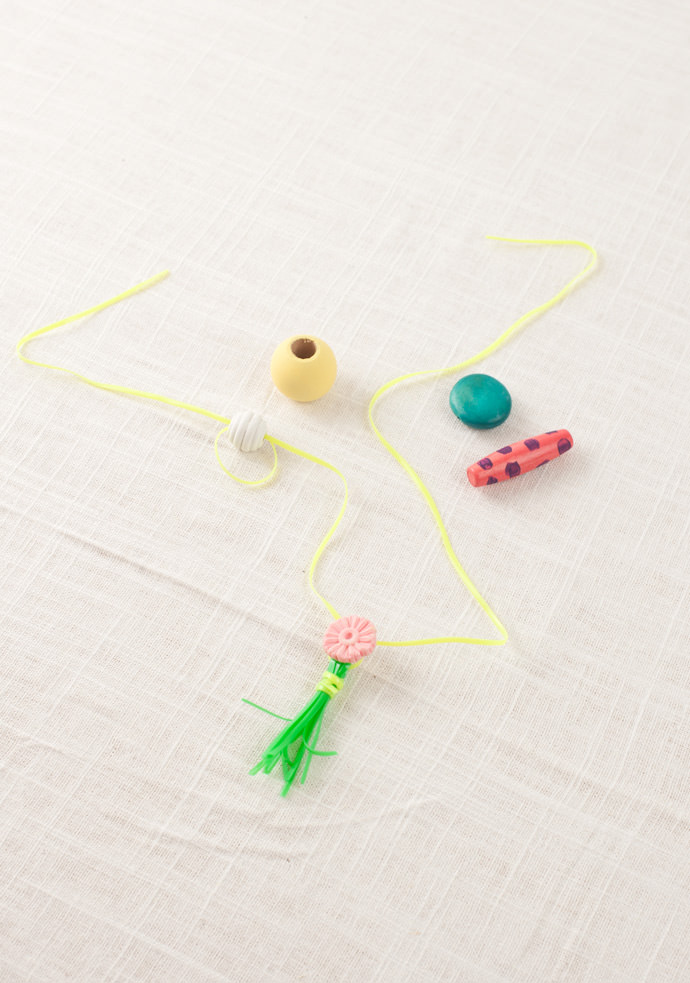 Finally, add your painted wooden beads and tie at the end.