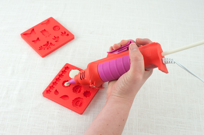 With your Mod Melter, fill your mold starting from the center and working your way out. Let cool for 10 minutes or until