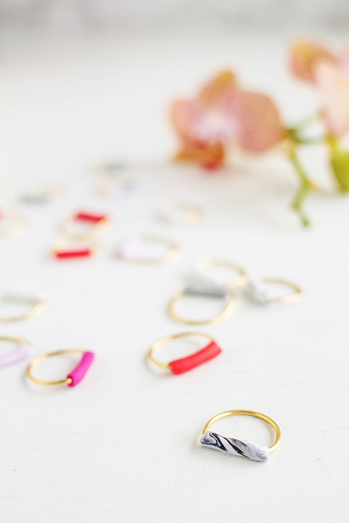 I love these pops of color, and what a simple idea to create a new ring, you could create 20 of them in no time – 2 for each finger! (or maybe some for your friends).