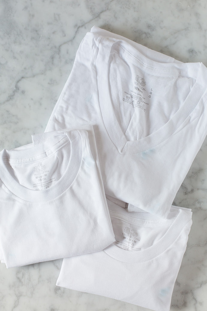 Time for the clean up! At the end of it all, I made them change in the entry way and I took their clothes right to the washer. After the actual shoot I worried a bit. We threw SO much paint. I didn’t know if OxiClean would really be able to get it out. I rinsed off the excess paint first and then threw the white tees into the washing machine with the OxiClean. I soaked them in water and OxiClean™ White Revive™ Laundry Stain Remover Powder overnight, following the instructions on the packaging. Then, I washed them in the morning. I use OxiClean all the time on my day to day laundry but I’ve never tested it this way. I was pretty amazed at the results.