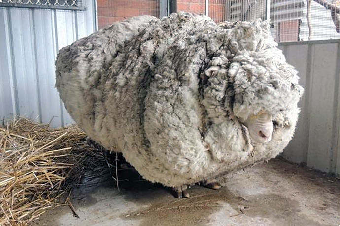 Like a real-life rendition of “Little Bo Peep,” a lost and overgrown merino ram named “Chris” was found wandering the Australian grasslands bearing over 89 pounds of wool. It took 42 minutes to sheer the gigantic sheep, setting a new world record in the process.