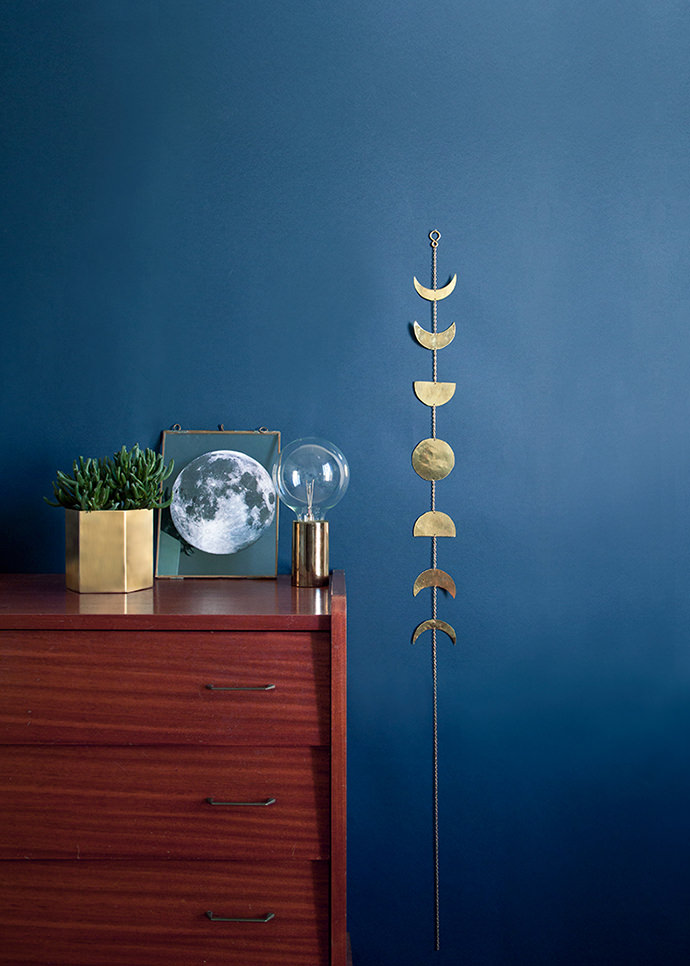 What a beautiful, boho take on the phases of the moon! I’d love to have this hanging by my bedside, or my daughter’s for that matter. Or hang several down my hallway wall!