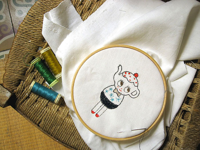 Sharing is one of the coolest aspects of the handmade community, thanks to designers like Eva Monleón. She just posted a super-cool (and free!) embroidery pattern on her blog. It’s based on one of her kettle dolls–looks like fun!