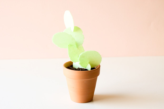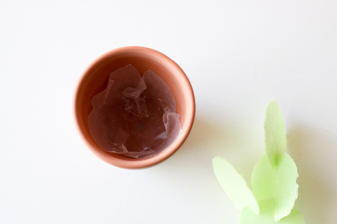 Cut a piece of wax paper to cover the bottom and sides of the terra cotta pot. Place the wax paper inside, and pull it to the sides to create a cup to hold the Oreo crumbles. This helps to cover the hole in the bottom of the pot, as well as keeping any grease (from the Oreos) contained.