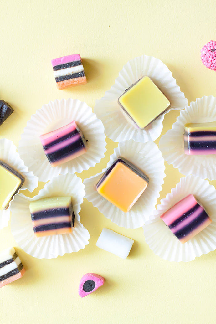 Halloween is just around the corner, and this would be the perfect post-trick-or-treat snack. Although it’s licorice-flavored, it’s actually not very sugary! It would be so festive on your snack table, or even sitting outside for the neighbors to enjoy while their kids are out and about. You could even experiment with some “adult” flavors, but make sure the kids don’t snag a bite!