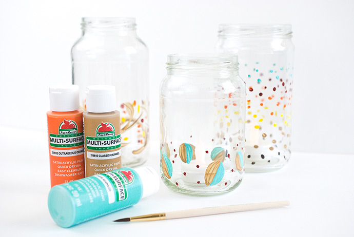 Candles and special decorations are common for holidays, but these don’t need to be exclusive for special occasions. Choose “every day” designs and display your painted candle jars during weeknight family dinners. Or, make some of these to give as gifts!