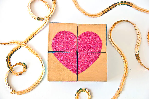 DIY Glittery Valentine’s Day Block Puzzle