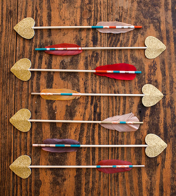 Pictured at the top of this post: DIY Love Struck Arrows; visit Somewhere Splendid for the tutorial.