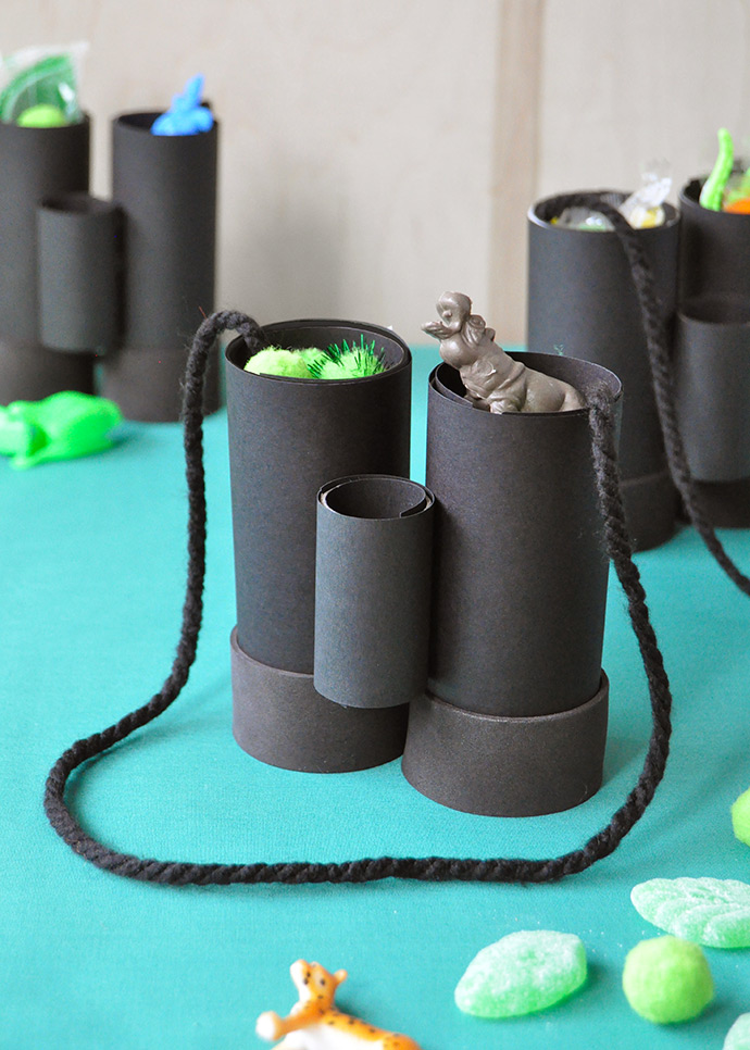 Fill the binoculars with fun treats! Individually wrapped candies, pom poms, and jungle-themed party favors are perfect!
