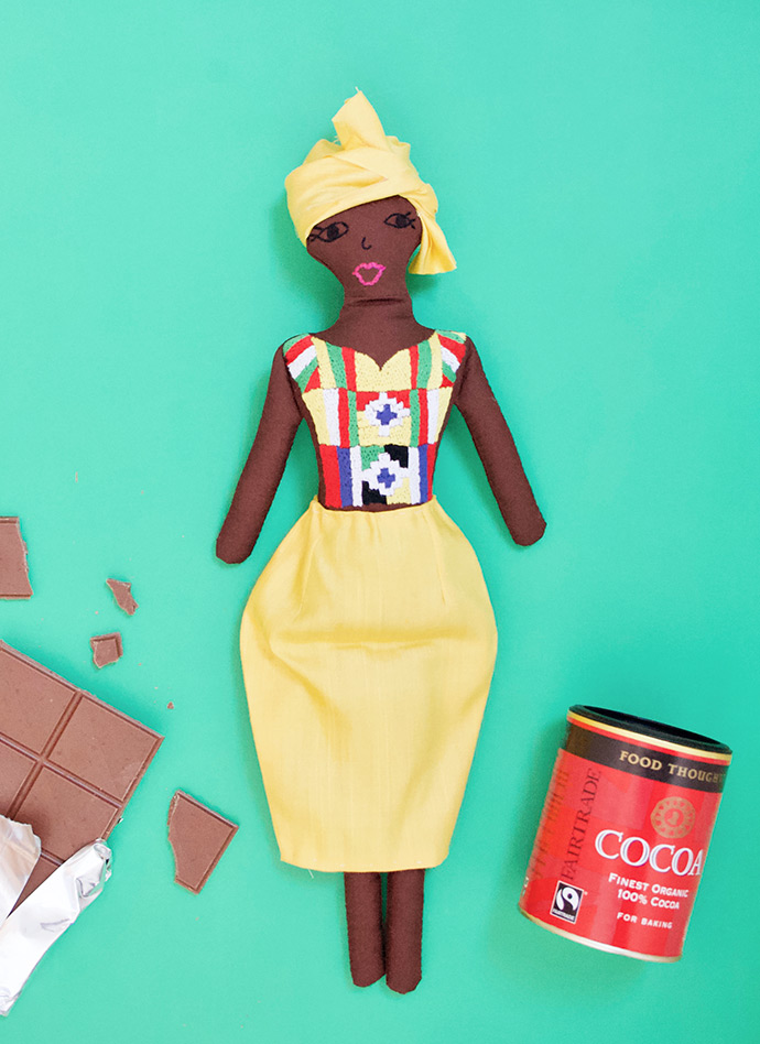 Today’s doll from Ghana completes the set of our “Dolls Around The World“. This lovely lady represents the beauty, strength and colour of Africa in a stunning outfit of Ghana kente cloth and bright yellow silk. Keep reading to see the full instructions!