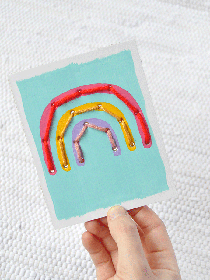We kept our stitch cards nice and small, but you can absolutely make them as big or little as you want. What if you painted a whole scene on some cardboard and turned that into a giant stitch card? Talk about cool kid-made art to display! We loved using all these bright and fun colors to create these adorable cards – you can find all 22 shades and 6 brand new Flash Metallic colors in the craft aisle at Target!