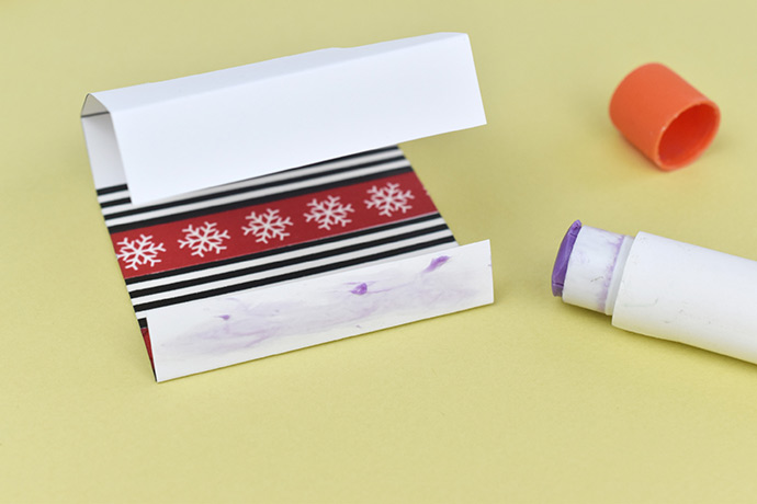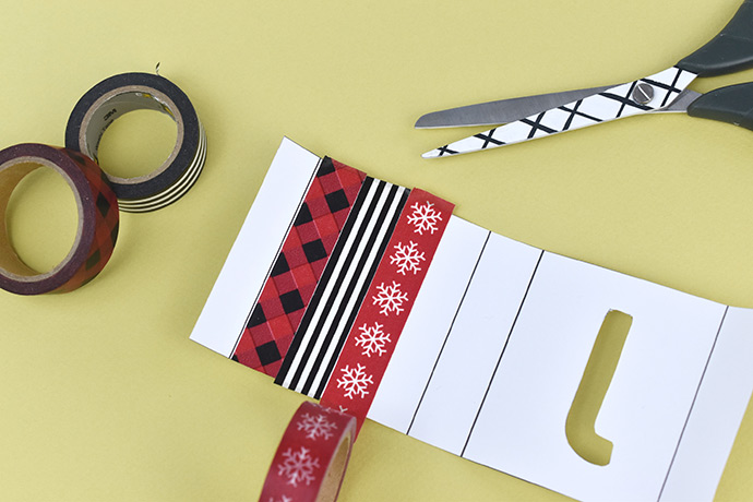 Add washi tape to the inside back of the folded letters blocks. Make stripes of tape or overlap it in small pieces. You can also decorate with other materials if you’d like.