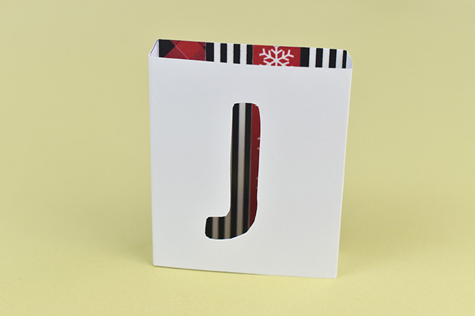 If you cut the shapes with a cutting machine, they won’t have scoring lines. Instead, score lines at the following measurements, starting on the edge closest to the letter end: 3/4″, 3-1/4″, 4″, and 6-1/2″.