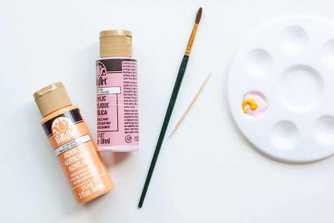 Use the end of a paintbrush to mix “Baby Pink” paint with a small drop of “Tangerine”.