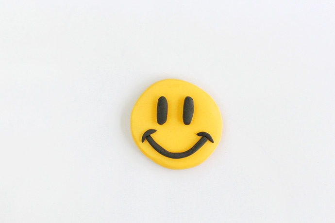 Using yellow clay, create a circle to be the base of the happy face. Then create details for the face using black clay.