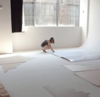 While the paint is drying, fold a piece of tissue paper in half and cut into a 10 by 7” rectangle and a 10 by 2” strip.