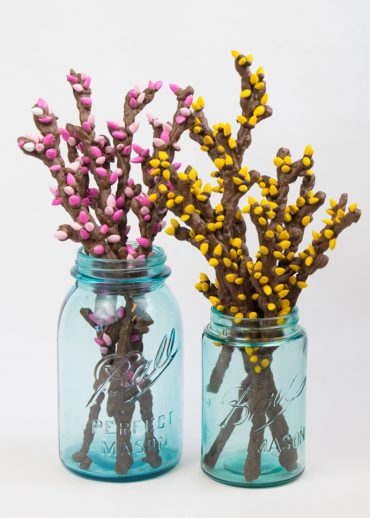 Branches of pretzel and chocolate make delicious decoration and are almost too pretty to eat! Almost.