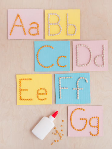 Make these colorful flashcards using upcycled cardboard, paint, and beans!