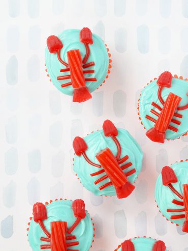 Use gummy candy to make these adorably silly lobster cupcakes!