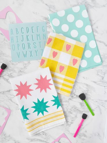 Use stencils and fabric ink to make these custom tea towels as a simple DIY gift!