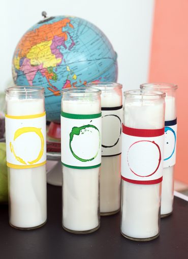 Cheer on your favorite athletes with these hand stamped Olympics candle wraps!