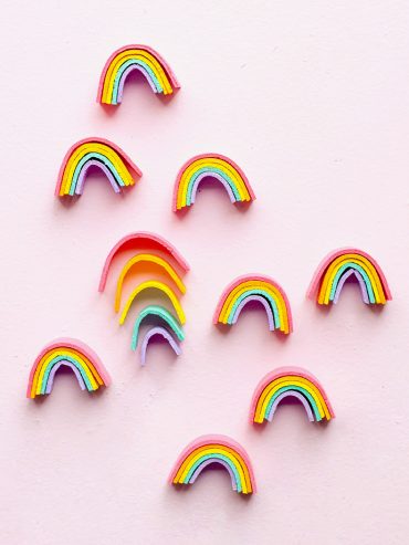 Make your very own mini wooden rainbow stackers for St. Patrick’s Day!