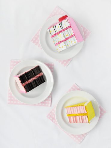 Upcycle cardboard and bubble wrap to make these adorable cake slices!