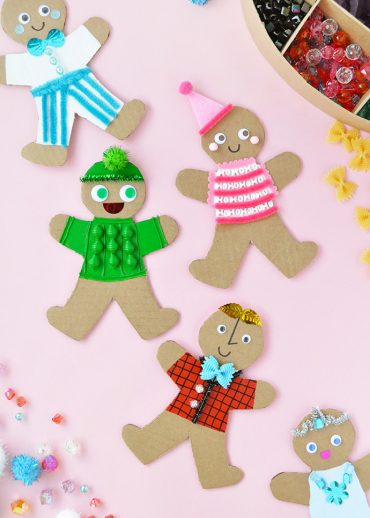 Mix and match Kid Made Modern supplies, cardboard, and painted pasta to make these playful gingerbread people!