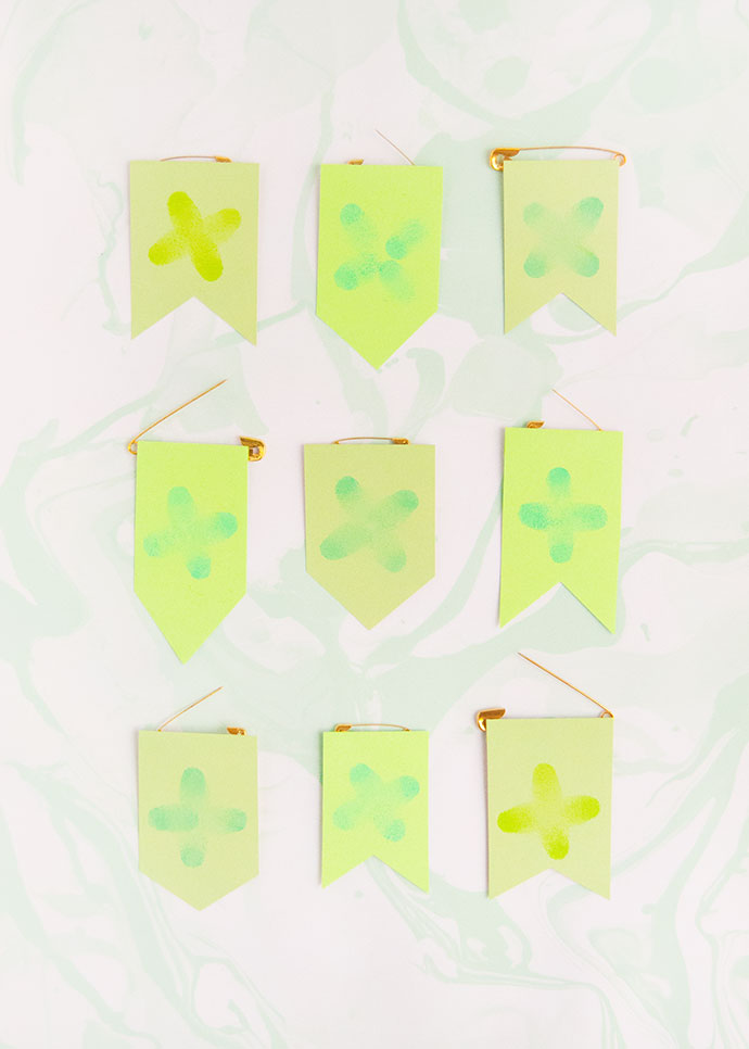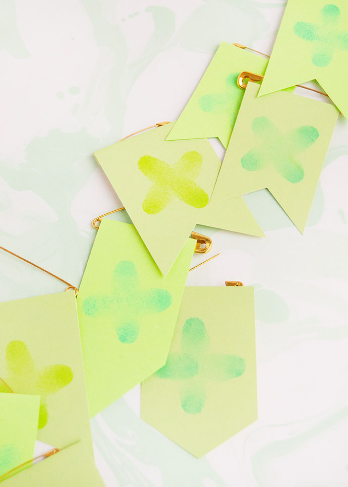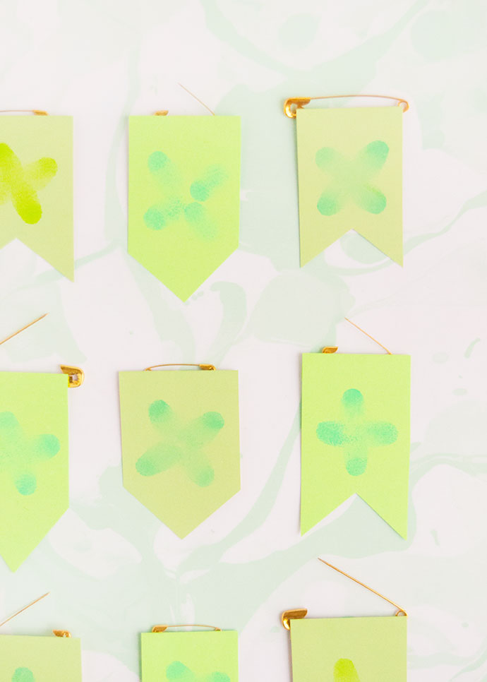 Use scissors to cut simple banner shapes around each clover.