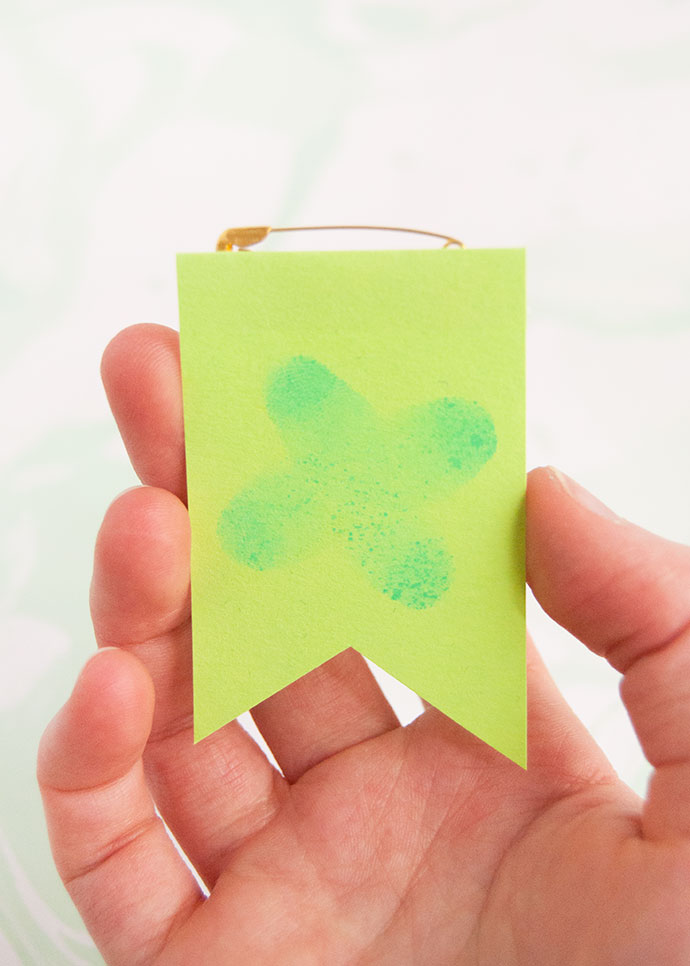 Tomorrow is St. Patrick’s Day! If you’re spending the day at home with your family and looking for a quick craft to celebrate, these fingerprint art pins are just the thing! If you don’t have a lot of green in your wardrobe, they’re just what you need to avoid any pinches during the day. Or if you do have an entirely green outfit already planned, these pins make excellent accessories.